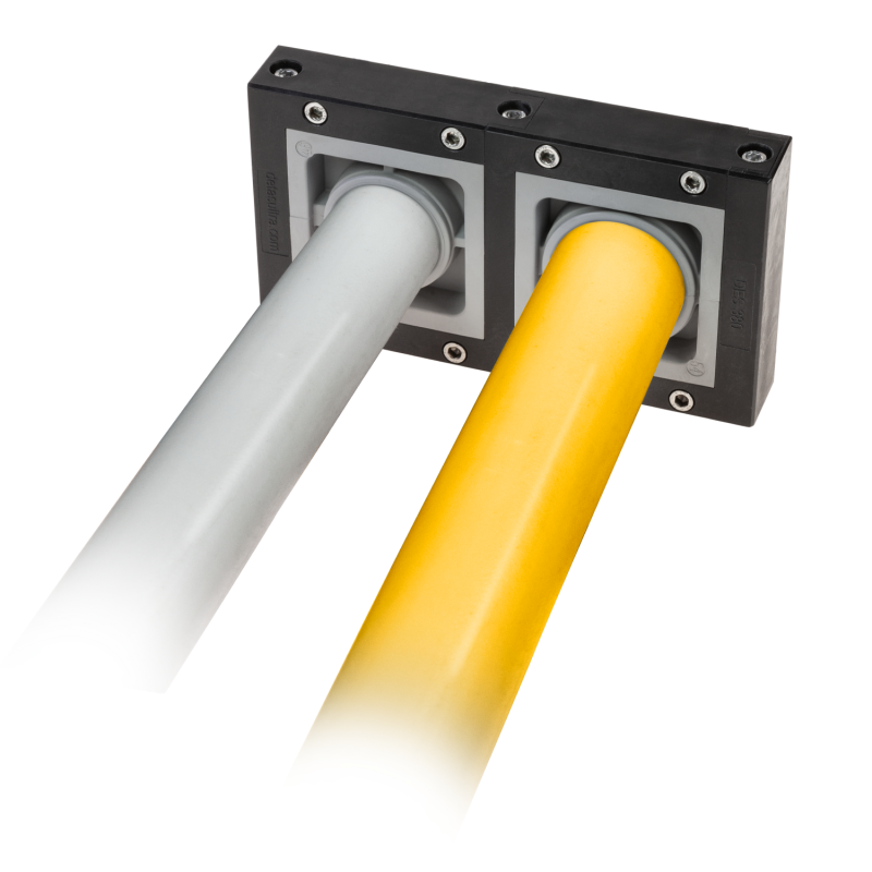 The 380MX's divisible frames are used to secure large-section cables at the entrance of switchboards or electrical equipment, ensuring fluidic and mechanical sealing.
