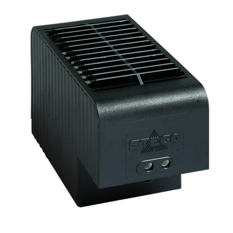 Încălzitorul electric compact al carcasei cu ventilator al dulapului de comandă și element de încălzire PTC ajută la prevenirea înghețului și a condensului în carcase și spații de montare. Carcasa din plastic face ca încălzitorul să fie sigur la atingere în timpul utilizării. Conexiune electrică rapidă prin priză IEC.