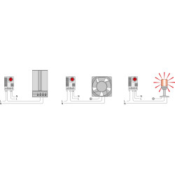 Электронный термостат для управления отоплением, охлаждением, фильтрующими вентиляторами или датчиками сигналов. Измеряет температуру окружающей среды и переключается с помощью выходных реле с переключающими контактами. Например, при работе отопления загорается встроенный светодиод.