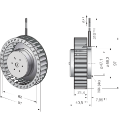 Радиальный вентилятор RET 97-25/14/2TDP DC 24 В 135 Вт