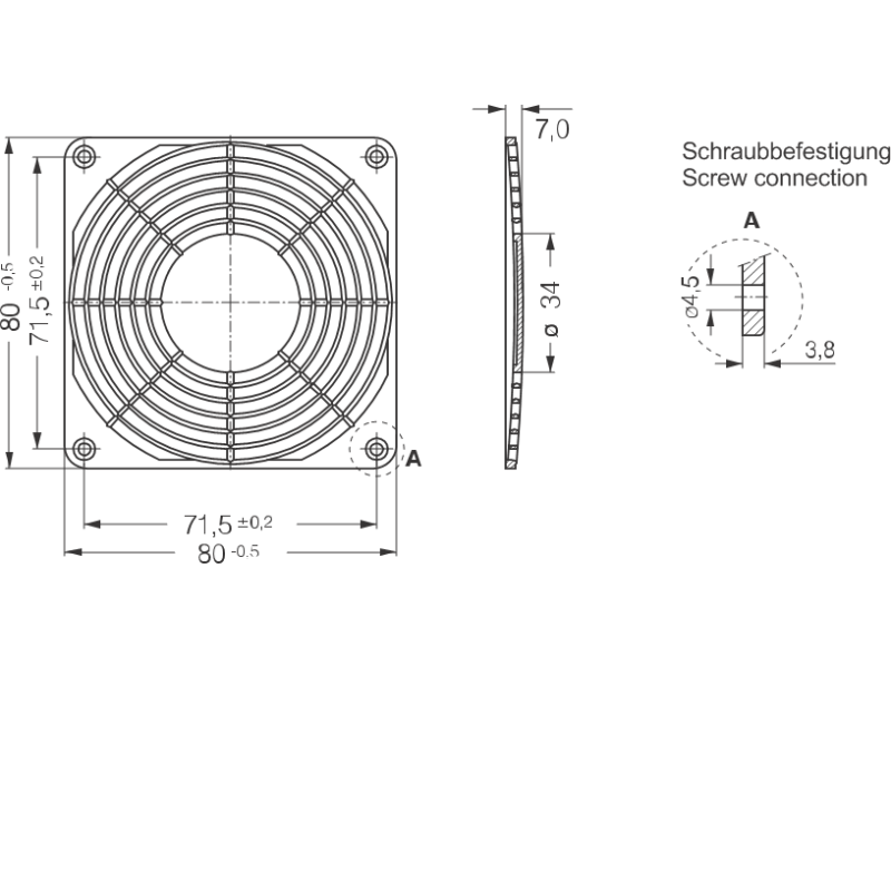 Штитник за вентилатор погодан за вентилаторе 80 к 80 мм
