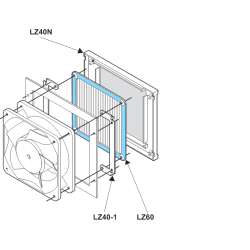 Поклопац се састоји од три компоненте: спољашњег заштитног поклопца, унутрашње монтажне плоче и заменљивог филтерског улошка. Уметак филтера се може брзо и лако заменити захваљујући механизму за брзо отпуштање у поклопцу. Штавише, замена уметака је могућа чак и док вентилатор ради, јер робусна заварена мрежа обезбеђује сигуран рад.