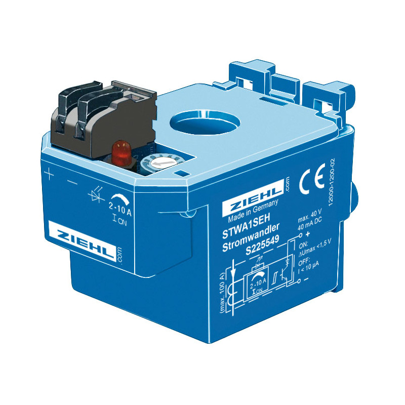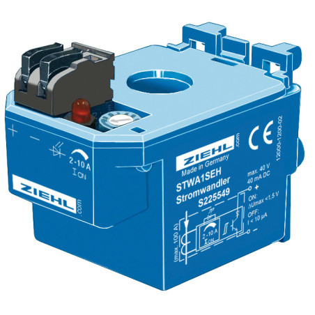 <п>СТВА1СЕХ се користи тамо где треба детектовати струјни ток, нпр. да пријави прекорачење границе, да искључи машину или само пријави тренутни проток. <п>СТВА1СЕХ има интегрисану електронику са транзисторским излазом. Граница је подесива 2 - 10 А помоћу потенциометра. ЛЕД приказује стање.<ул><ли>подесива тачка укључивања 2-10 А<ли>уграђена ЛЕД приказује стање излаза<ли>изоловани транзистор-излаз мак. ДЦ 40 В / 40 мА<ли>излазни комби директно повезан на дигитални улаз ПЛЦ<ли>интегрисане диоде за заштиту од обрнутог напона<ли>електрично повезивање преко прикључака који се могу спојити без шрафова<ли>2-жични, није потребан напон напајања<ли>ДИН-шине за монтажу<ли>струјни трансформатор мм)<ли>макс. преоптерећење 100 А непрекидно, 300 А мак. 10 стр.