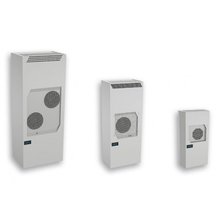 The cooling capacities range from 320 W to 4 kW. As standard, the ComPact Line air conditioners come in powder-coated (RAL 7035) sheet metal and can be ordered either for wall mounting or recessed installation. For applications that require hygiene or a high level of corrosion protection, the devices can be equipped with stainless steel housing.