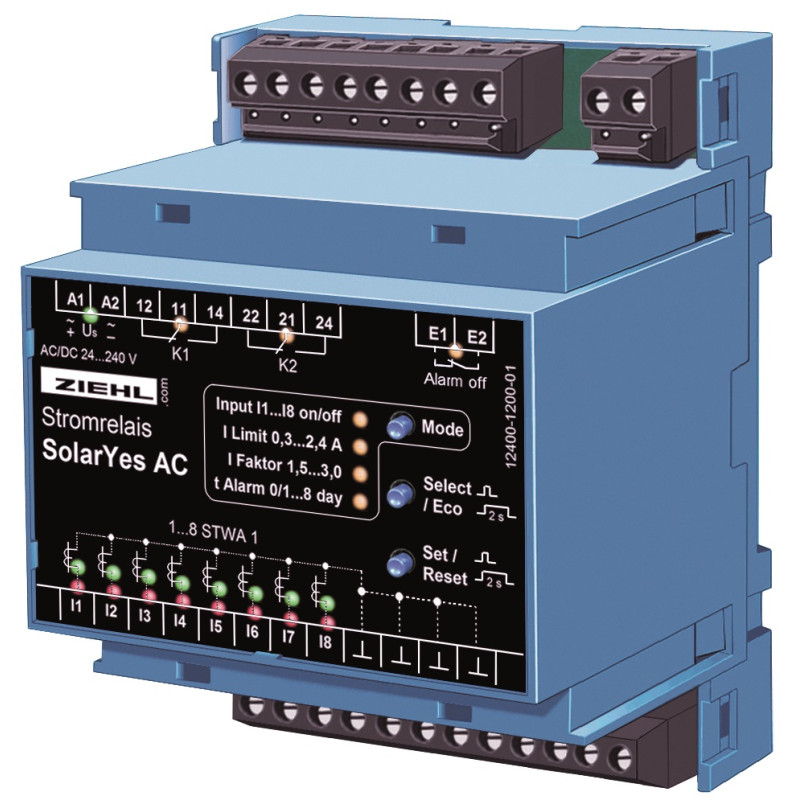 SolarYes відстежує потужність інверторів у фотоелектричних системах. Його вихідні реле (2 безпотенційних контакти) перемикаються, коли протягом останніх 24 годин не було струму в одній із максимум 8 контрольованих ліній. Таким чином виявляється і повідомляється про несправність інвертора або запобіжника. Оператор може ініціювати ремонт негайно та зекономити час простою.